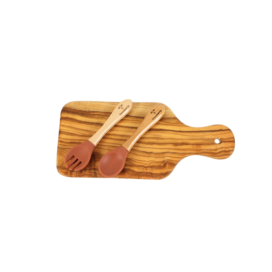 Ensemble Cuillère et Fourchette en Silicone avec Poignées en Bambou