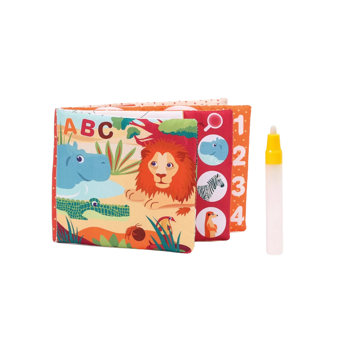 Un livre éducatif et réutilisable pour découvrir les couleurs, les formes, les chiffres et les lettres grâce à un crayon magique rempli d’eau. À chaque passage, les images de la jungle s’animent et se colorent sous les yeux émerveillés de bébé !